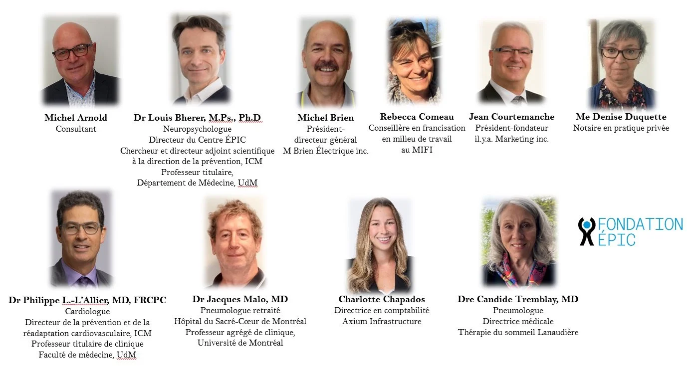 La majorité des administrateurs sont d'abord et avant tout des membres actifs du Centre ÉPIC de l'Institut de Cardiologie de Montréal et surtout des bénévoles sollicités et convaincus: